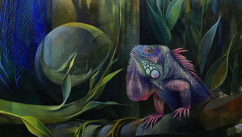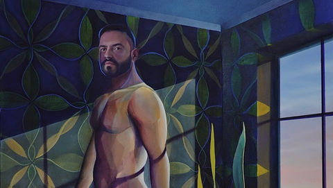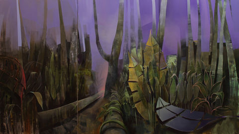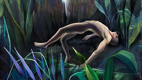 In my latest series, titled “Which Roots?” I explore the relationship between the figure and their environment; their transformation and adaptation to their new geography, and the politics of seeing and being seen as a newcomer and an immigrant. As I long to feel a sense of belonging, I reflect on my muscle memory of blending in. In my current works, the figures are pictured in lush, rich forest settings with lots of change, and their resilience is evident through their metaphoric relationship with the environment.
